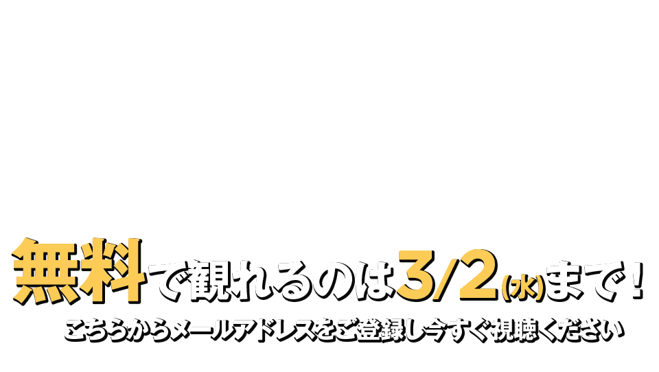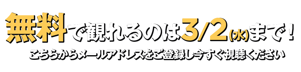 ※無料映像は3/2(水)23:59を過ぎると手に入らなくなるので、今の内にご確認ください。